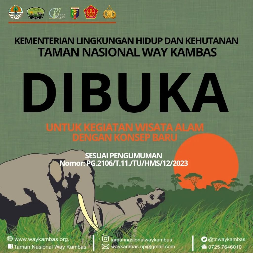 News & Blog Melindungi rumah terakhir bagi satwa kebanggaan Indonesia di Lampung. Era Baru Pariwisata: Taman Nasional Way Kambas Resmi Dibuka Kembali dengan Konsep Desa Penyangga Kabar gembira yang telah lama dinanti akhirnya tiba bagi para pecinta alam dan sobat konservasi. Pada hari Rabu, 20 Desember 2023, Balai Taman Nasional Way Kambas (BTNWK) secara resmi […]