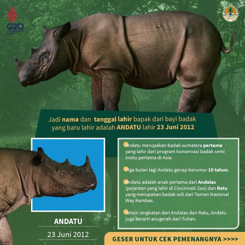 Mengenal Andatu: Simbol Keberhasilan Konservasi Badak Sumatera di Way Kambas